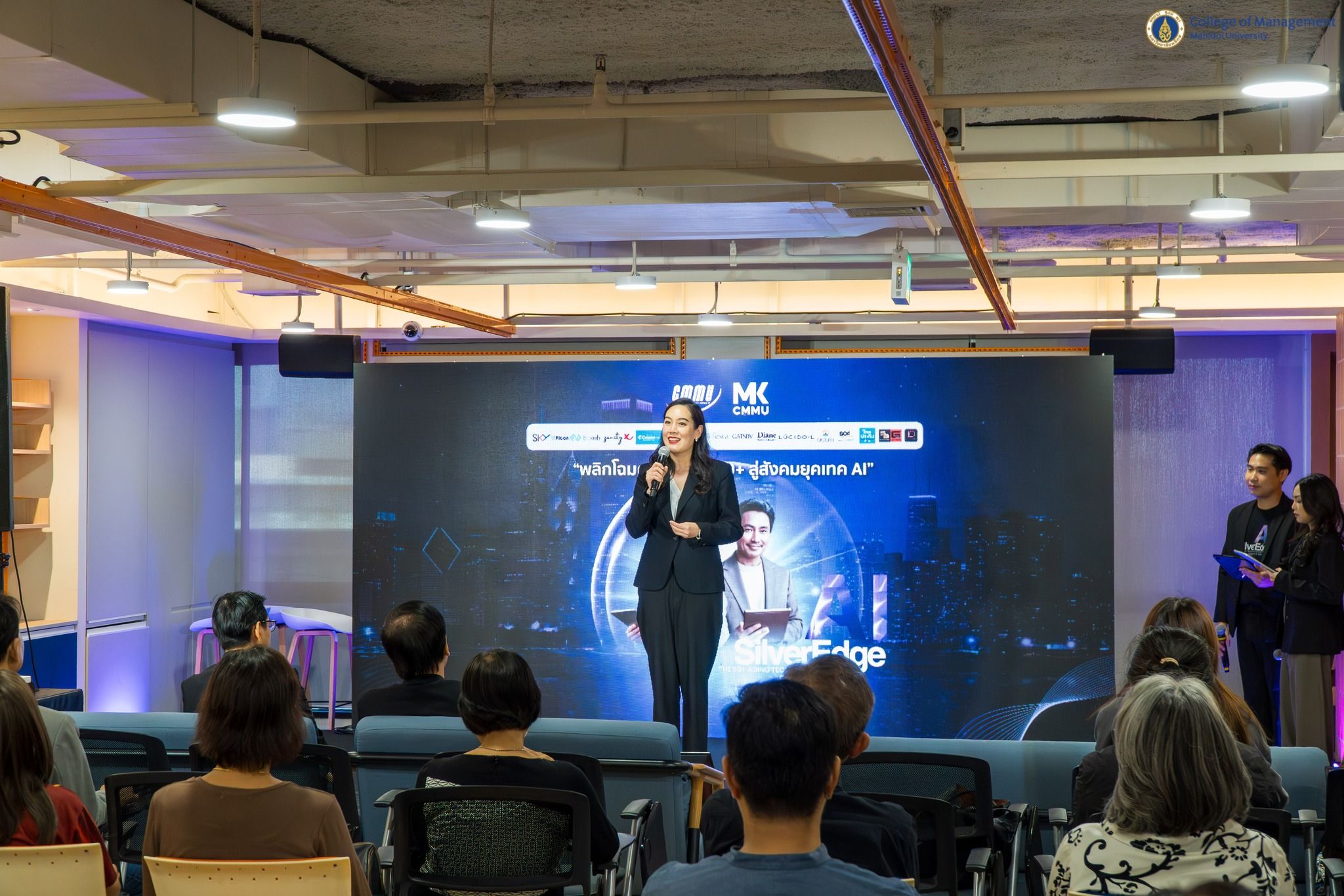 “Silver Edge AI พลิกโฉมคุณค่าชีวิต 50+ สู่สังคมยุคเทค AI” โดยมี รองศาสตราจารย์ ดร. ปรารถนา ปุณณกิติเกษม คณบดี วิทยาลัยการจัดการ มหาวิทยาลัยมหิดล กล่าวเปิดงาน พร้อมด้วย รองศาสตราจารย์ ดร.พัลลภา ปีติสันต์ หัวหน้าสาขาการตลาด เข้าร่วมงาน และ อาจารย์ประเสริฐ ธวัชโชคทวี อาจารย์ที่ปรึกษาโครงการกล่าวต้อนรับ โดยทีมนักศึกษาให้ข้อมูลผลการวิจัยที่ทำการศึกษามาแก่ผู้เข้าร่วมงาน แล้วยังได้รับเกีรยติจาก คุณธนัท เบญจภัทรเศรษฐ์ จาก Bitkub Moonshot บรรยายในหัวข้อ เปิดมุมมองโอกาสธุรกิจใหม่ในยุค Silver Edge และ คุณณัฐฏ์พล อัควานนท์ จาก ZenityX บรรยายในหัวข้อ ปลดล็อกทักษะ AI สำหรับวัย 50+ พร้อมสอนกันสดๆ แบบใช้ได้จริง เริ่มต้นง่ายๆ