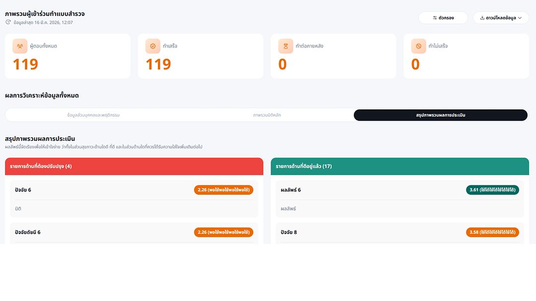 - เพื่อช่วยตอบโจทย์องค์กรสมัยใหม่ที่ใส่ใจสุขภาพ ความเป็นอยู่ สุขภาวะขององค์กร ผ่านนวัตกรรมและเทคโนโลยีที่ช่วยรวบรวมข้อมูล / วิเคราะห์ / รายงานข้อมูลเชิงสถิติ / แสดงผลแบบอัตโนมัติ ซึ่งสามารถใช้งานได้ง่าย สะดวก และแม่นยำ
